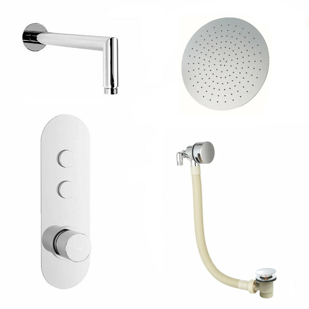 Crafted in the UK from durable brass and boasting an elegant polished chrome finish, the Amy Concealed Thermostatic Shower Valve, Fixed Head & Overflow Bath Filler is the perfect combination of minimalist luxury and modern technology that we all secretly dream of. Use push button technology to control each outlet, and the dial underneath to select your desired temperature; rest assured that thanks to safety valve technology the Amy regulates the water temperature and prevents accidental scalding too.