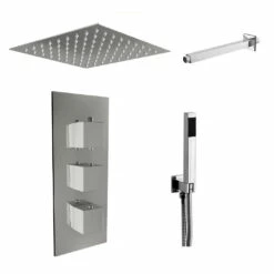 Target those hard to reach areas with the contemporary square handset, and enjoy a luxurious rainfall shower experience day in-day out with the fixed shower head. Easy clean nozzles mean maintenance is stress-free, and that polished chrome finish keeps your bathroom looking stylish. If you’re after some extra reassurance, perhaps those lengthy manufacturer’s guarantees will tempt you?