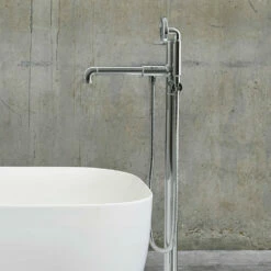 Crosswater Belgravia Crosshead Floor Standing Bath Shower Mixer With Handset Kit – Unlacquered Brass