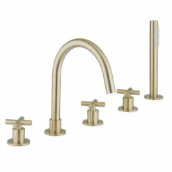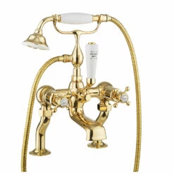 Crosswater Belgravia Crosshead Floor Standing Bath Shower Mixer With Handset Kit – Unlacquered Brass