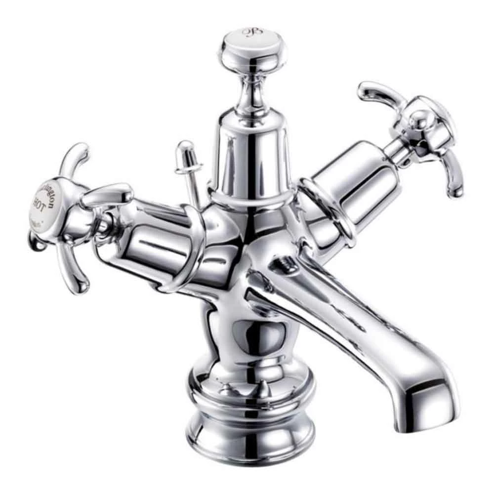 How better to add a slice of opulence and lavishness to your traditional bathroom than with the Anglesey Regent Basin Mixer from Burlington. It features four spoke Anglesey tap heads that cover the internal ceramic disc cartridges; technology that allows you to control the flow of water with just a quarter turn of the handle. Crafted with the finest solid brass and finished in polished chrome, this mixer has white ceramic accents on the central indice and tap heads to fully complete the traditional look. Suitable for both low and high pressure systems, it’s also supplied with a Neopearl flow straightener and aerator to ensure a steady, consistent stream every time you use it.