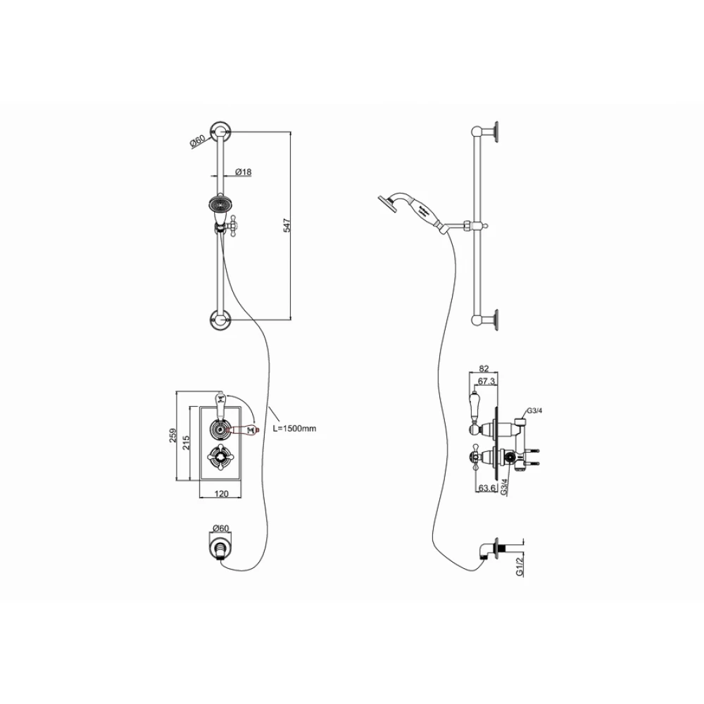 The Trent Concealed Thermostatic Shower Kit with Ceramic Handset is an amalgamation of solid brass, white ceramic accents and polished chrome. The single outlet concealed shower valve features a chunky ceramic lever to turn the water flow on and off, and a valve to adjust the temperature. This valve comes as standard with a Claremont handle however you can upgrade to an Anglesey handle to match your shower with other Burlington tapware within your bathroom.