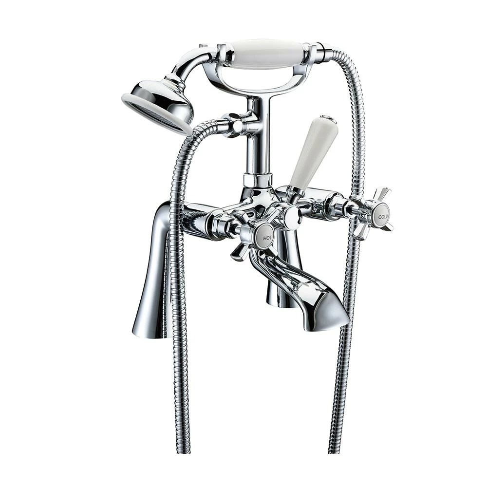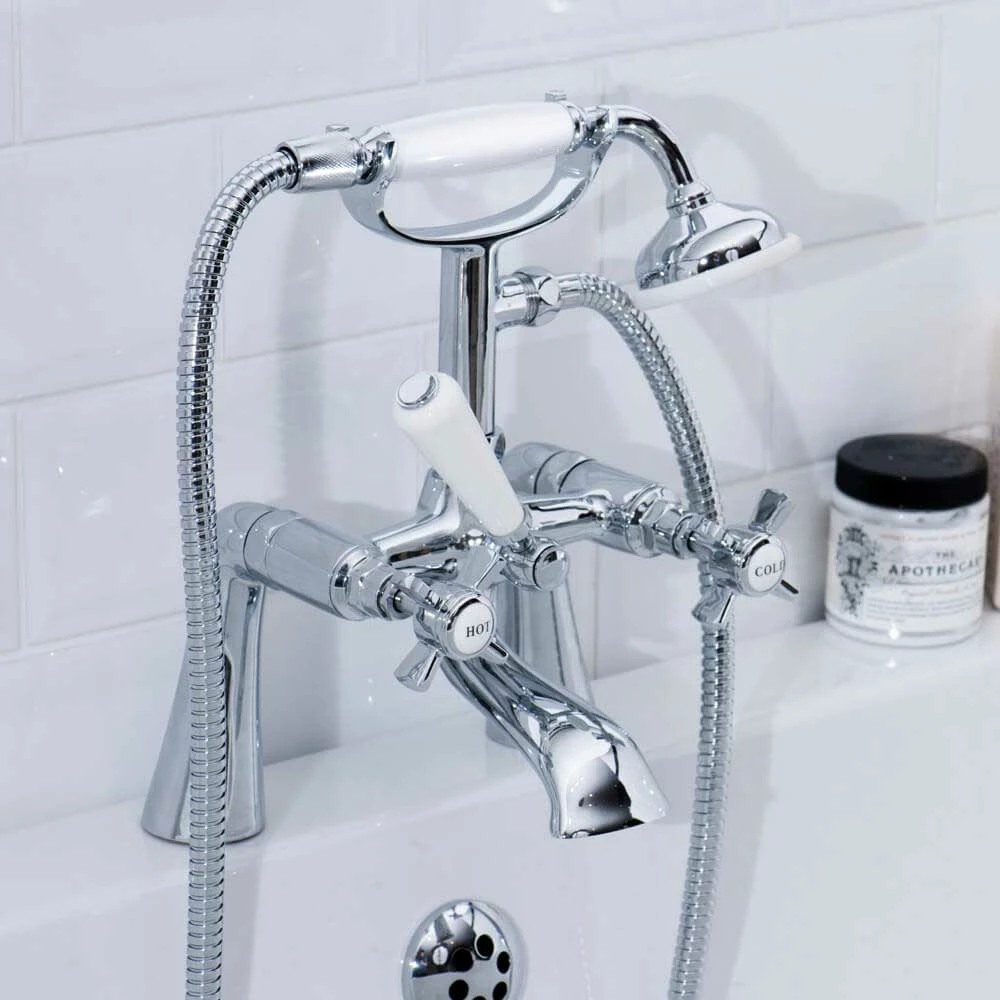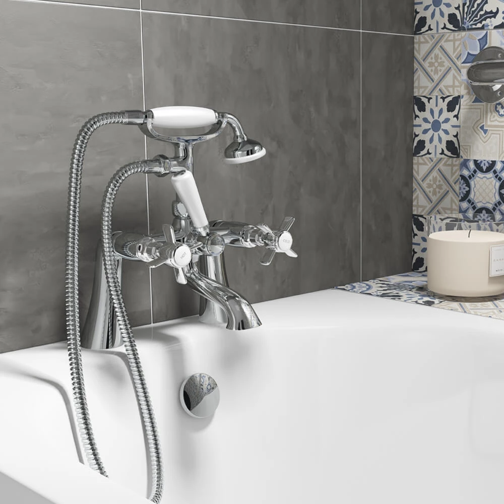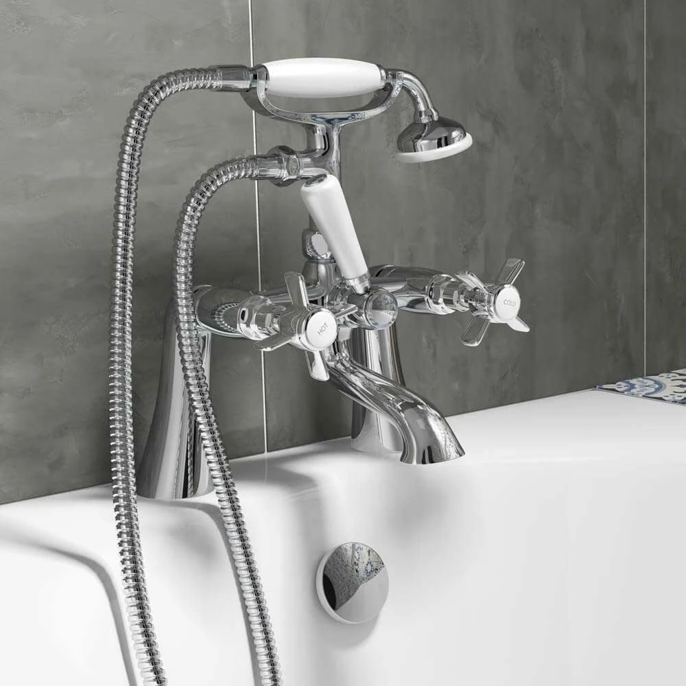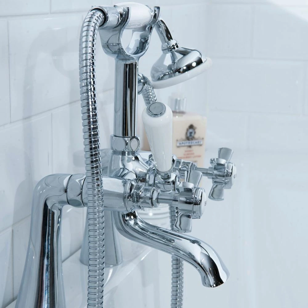 The Butler & Rose Loretta bath shower mixer is impeccable from every angle. From its crosshead handles to the telephone cradle that holds the shower handset, there isn’t a part of it that hasn’t been meticulously designed. Underneath the period styling, however, is a thoroughly modern tap. It is made from solid brass and then plated in solid chrome, and controlling the water flow are the latest ceramic disc cartridges. The Loretta comes complete with a shower handset, hose and holder, as well as a 10 year guarantee.