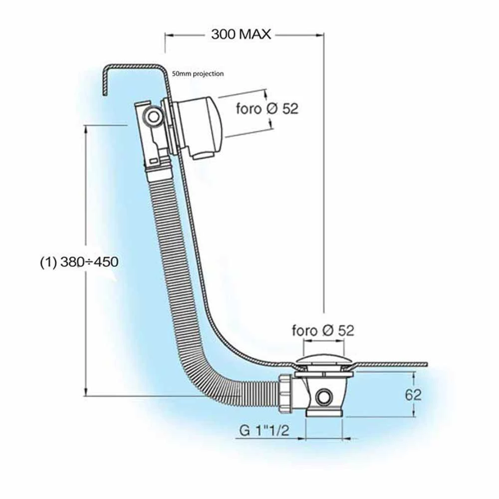- Flexible overflow for easier installation and fitting inside odd bath shapes