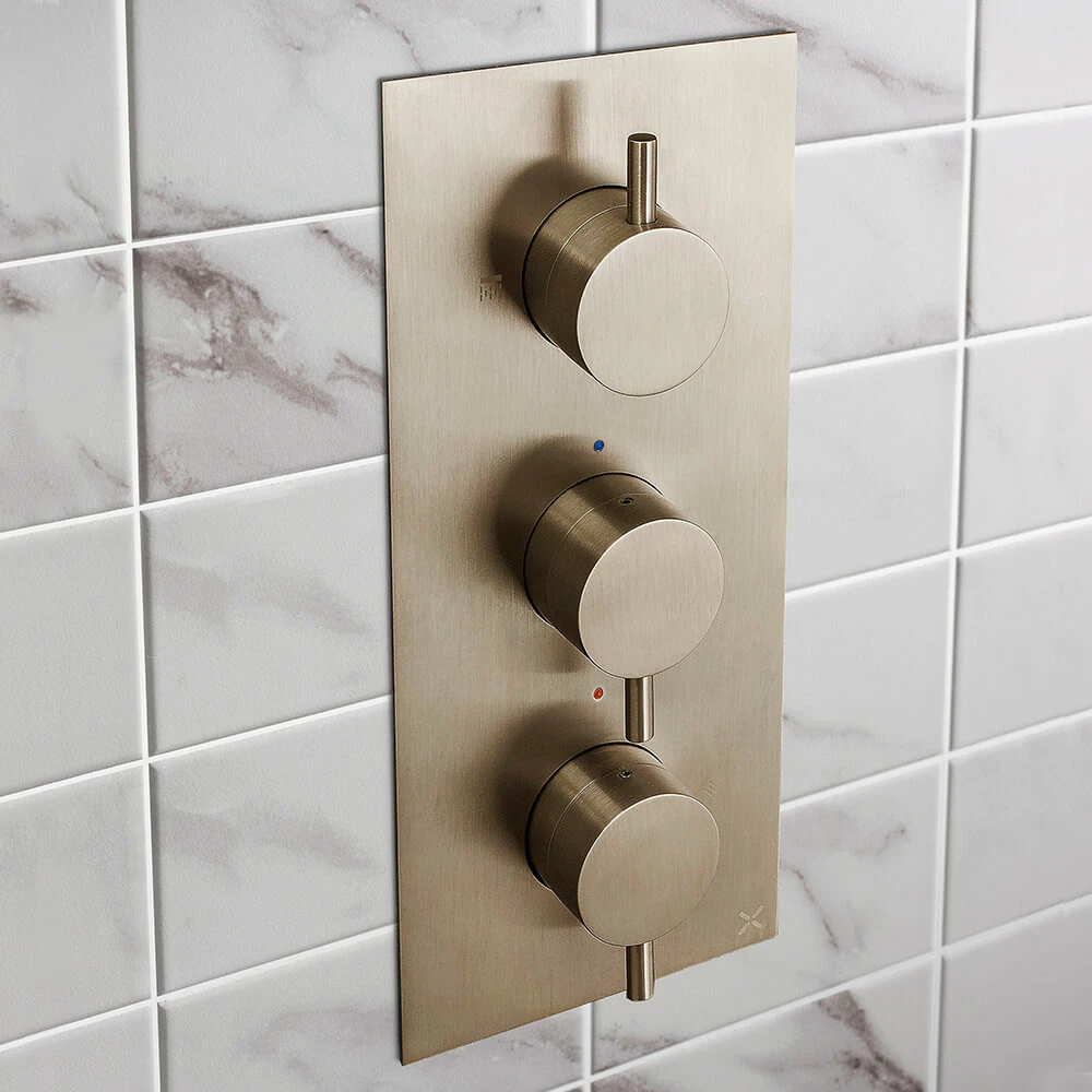 - Top & bottom dials control 2 outlets and middle dial controls the water temperature