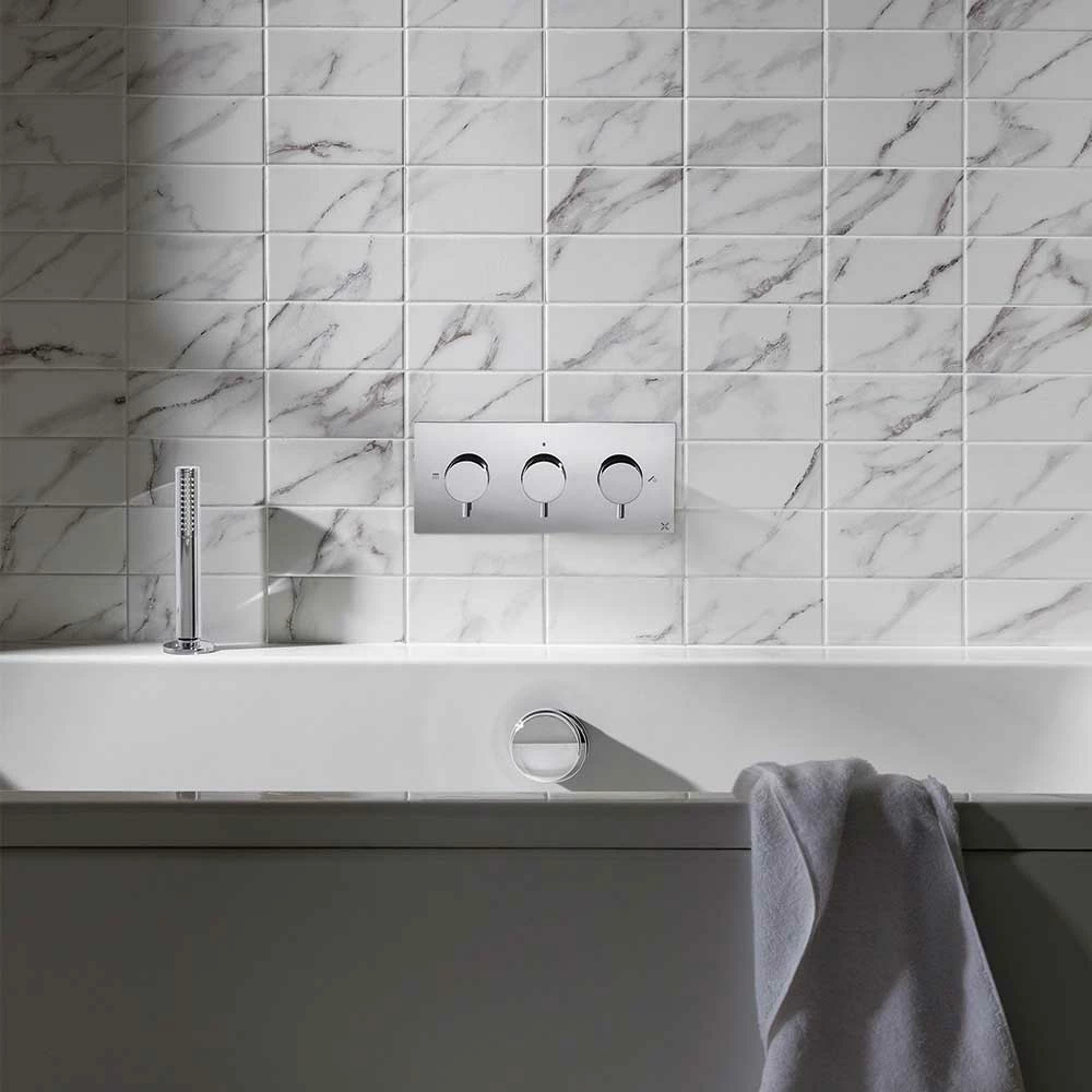 Please note that this is an overflow bath filler only, and you will need a valve to control the water flow and temperature. Valves come in many styles and configurations, and the best one for you will depend on budget, styling tastes, and whether you want to add a shower head, rail, pull-out handset or a combination of things. Please take a look at our large collection of valves, or if you need some help creating the perfect bath/shower set-up, our sales and design team will be happy to help you. This will then allow you to include optional extras to your bathroom, such as a thermostatic shower or handset.