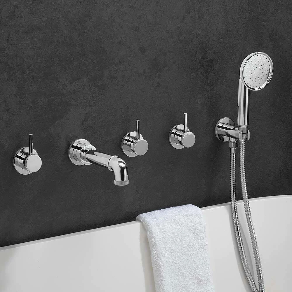 Crosswater MPRO Industrial 5 Hole Wall Mounted Bath Filler Tap with Spout & Handset – Chrome