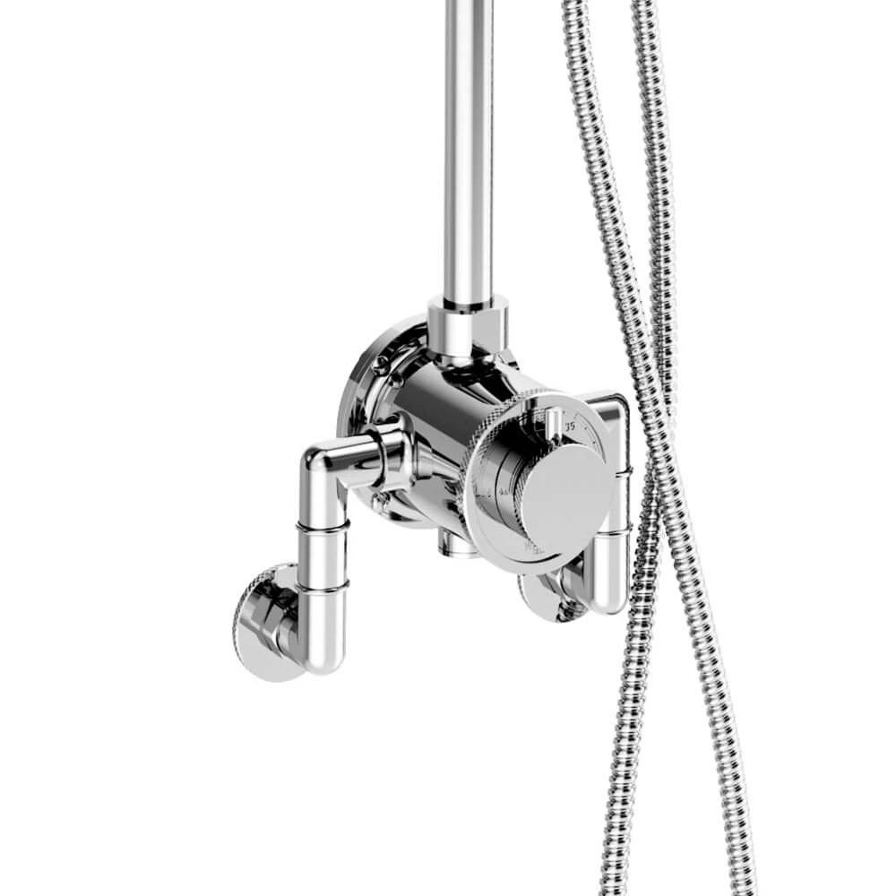 - Comes with valve, rigid riser, wall mounted shower arm, fixed shower head, handset & hose