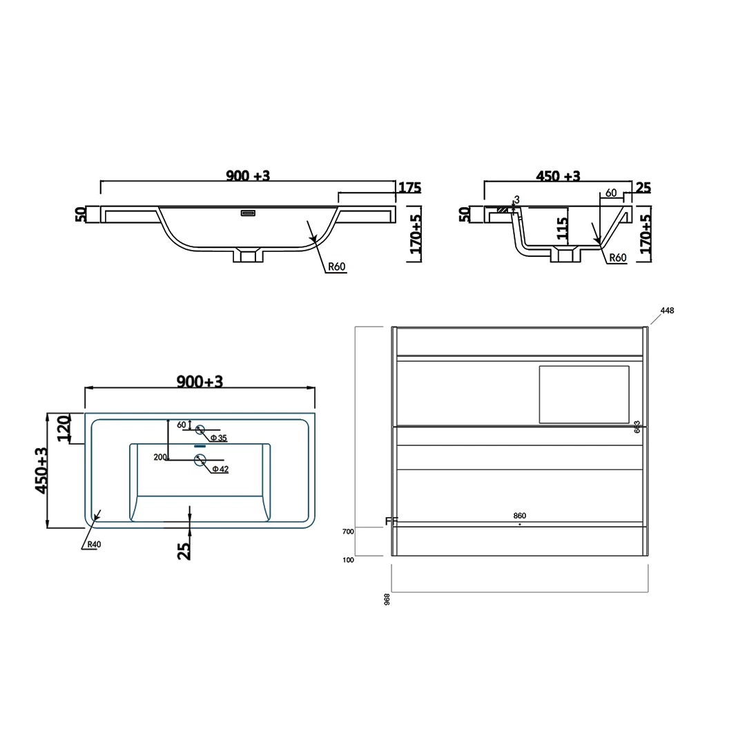 - Polymarble Stonecast basin with high gloss anti-bacterial finish