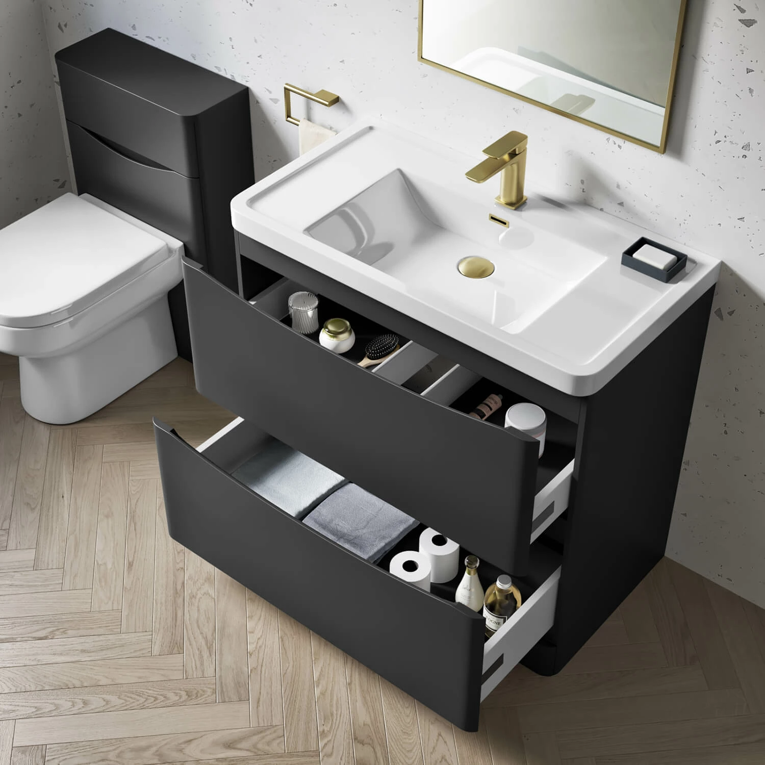 Efficient and elegant, the Harbour Clarity 900mm floorstanding vanity unit is as stylish as it is practical. Tidy up bathroom clutter in the spacious, soft-close drawers, which make it ideal to tuck away those bathroom essentials.