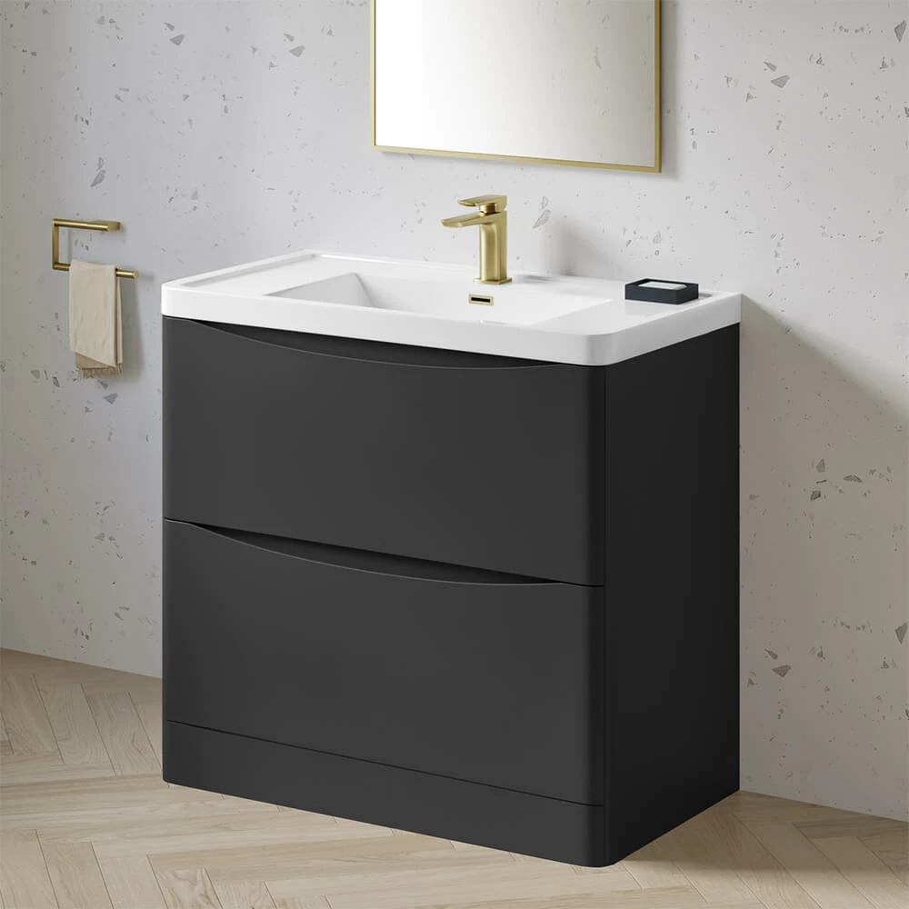 This Harbour Clarity vanity unit features a strong polymarble basin, which is super easy to clean and complements the sleek handless design of the unit.