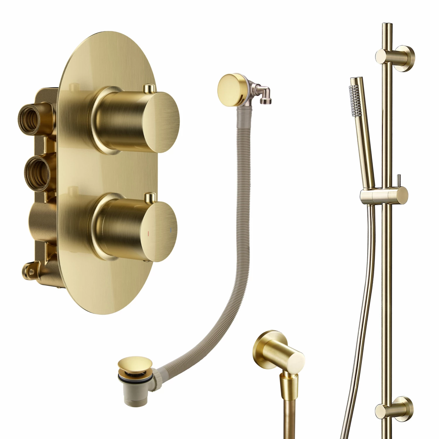 Harbour Clarity Brushed Brass Slide Rail Shower Kit with Shower Handset & Hose