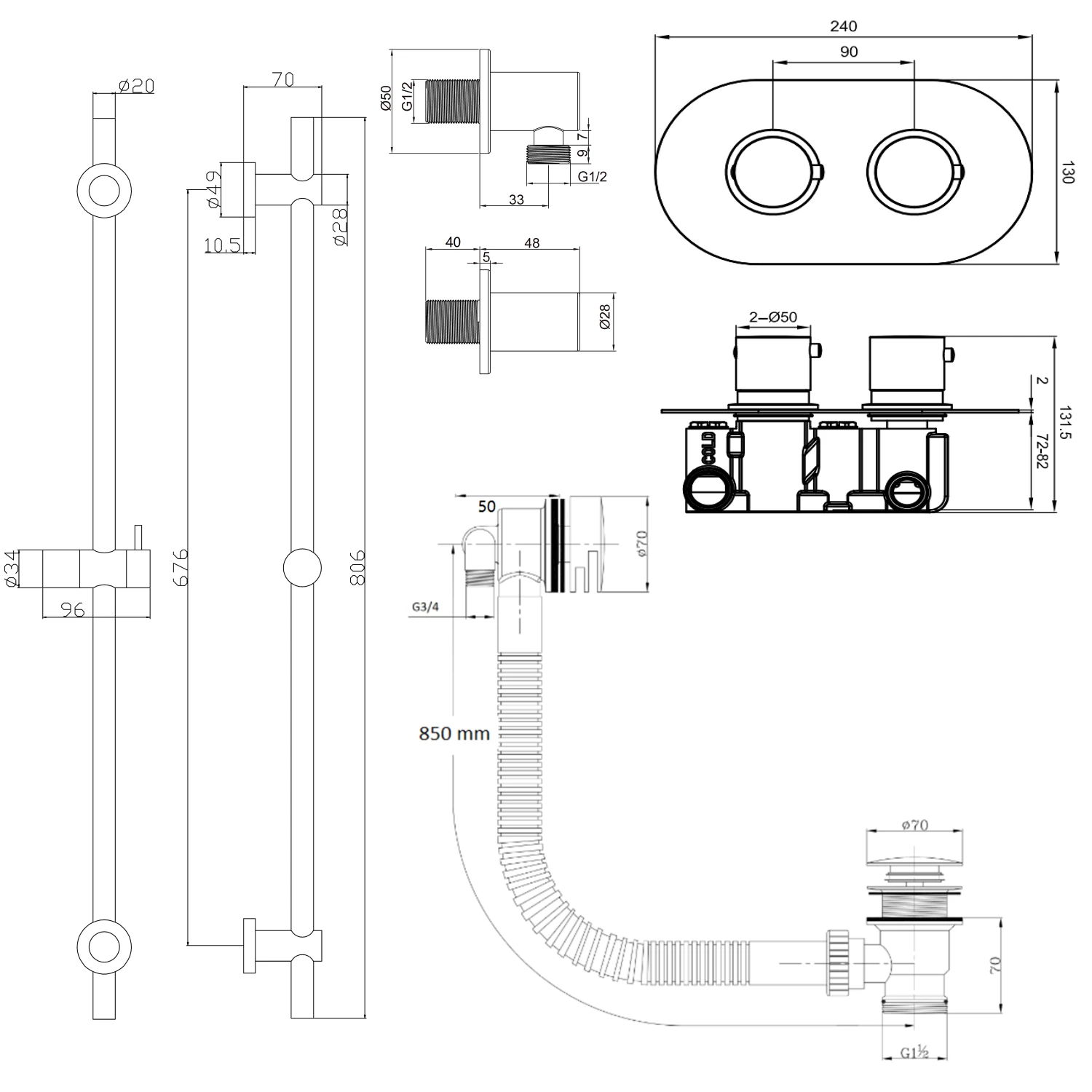 - Overflow diameter: 70mm