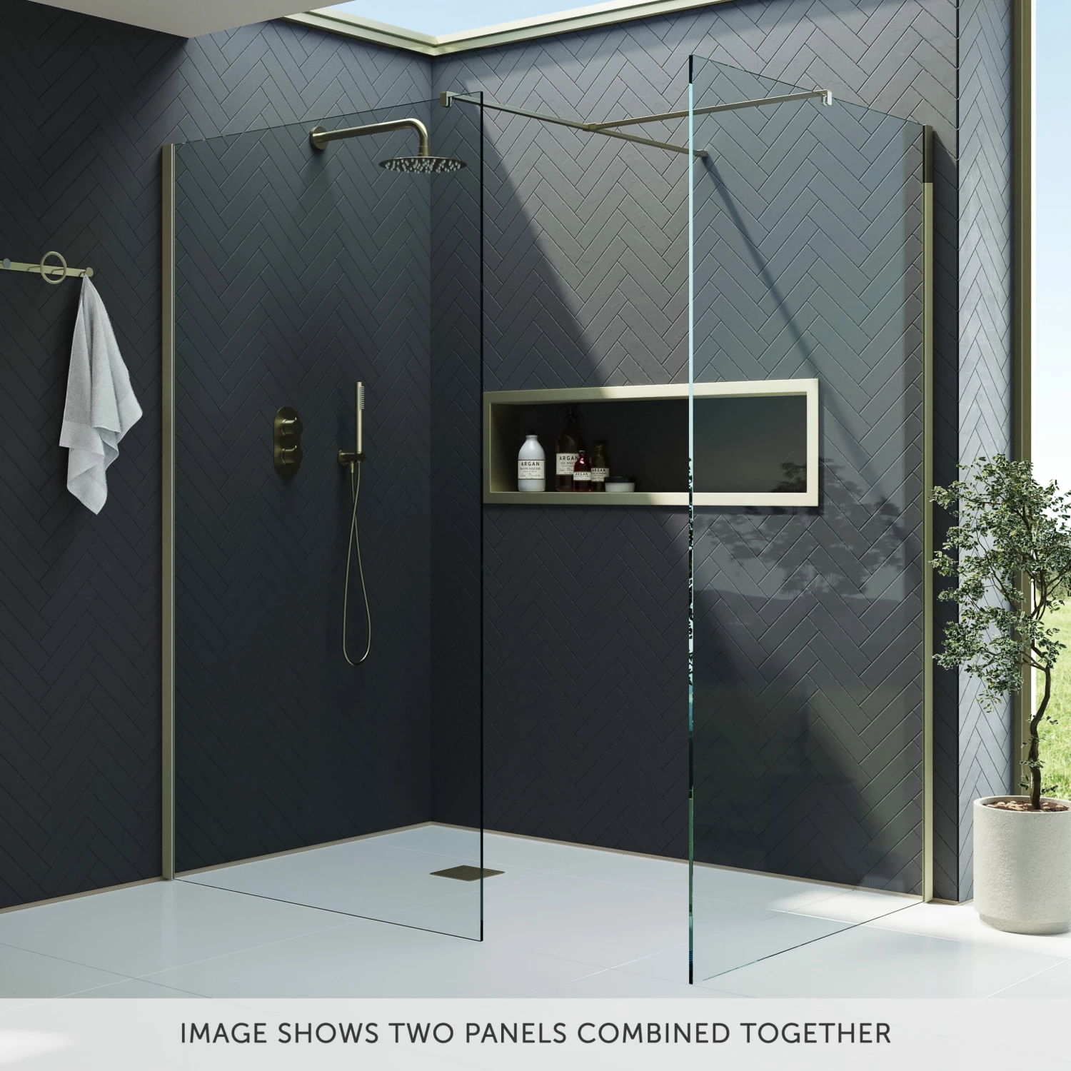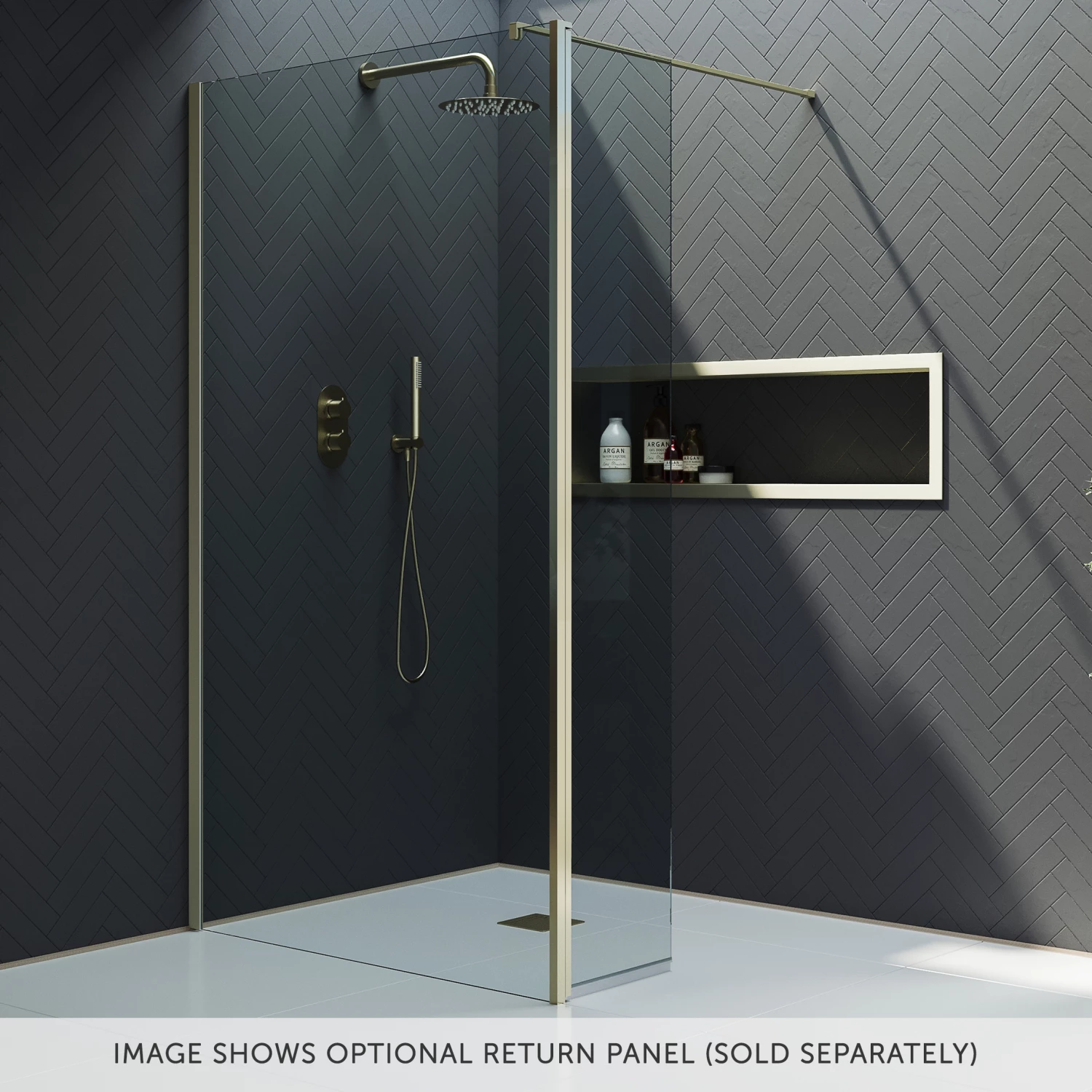- Walk-in shower tray, shower waste and shower kit sold separately