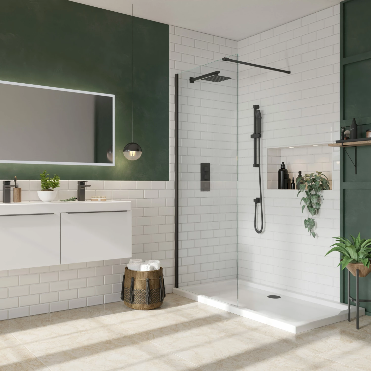 - Walk-in shower tray, shower waste and shower kit sold separately (see recommended extras)