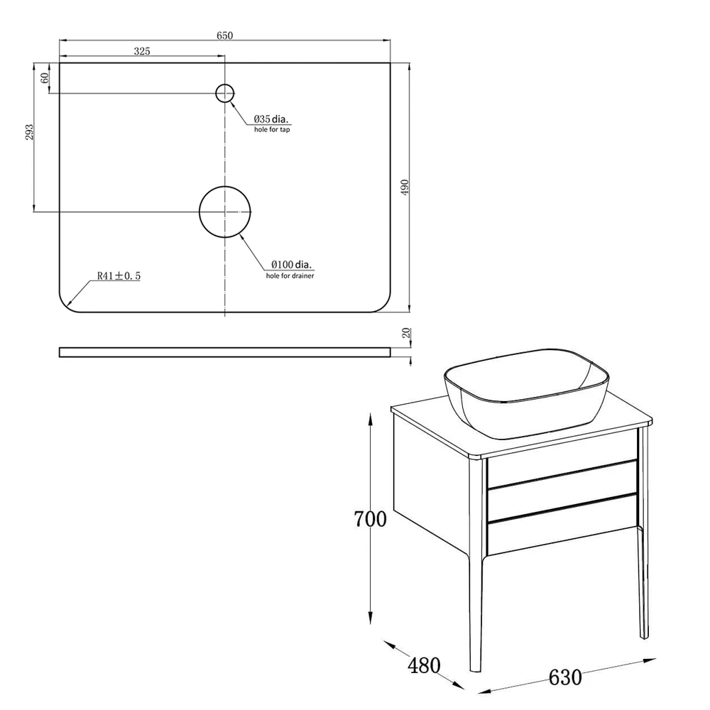 - Basin and taps not included