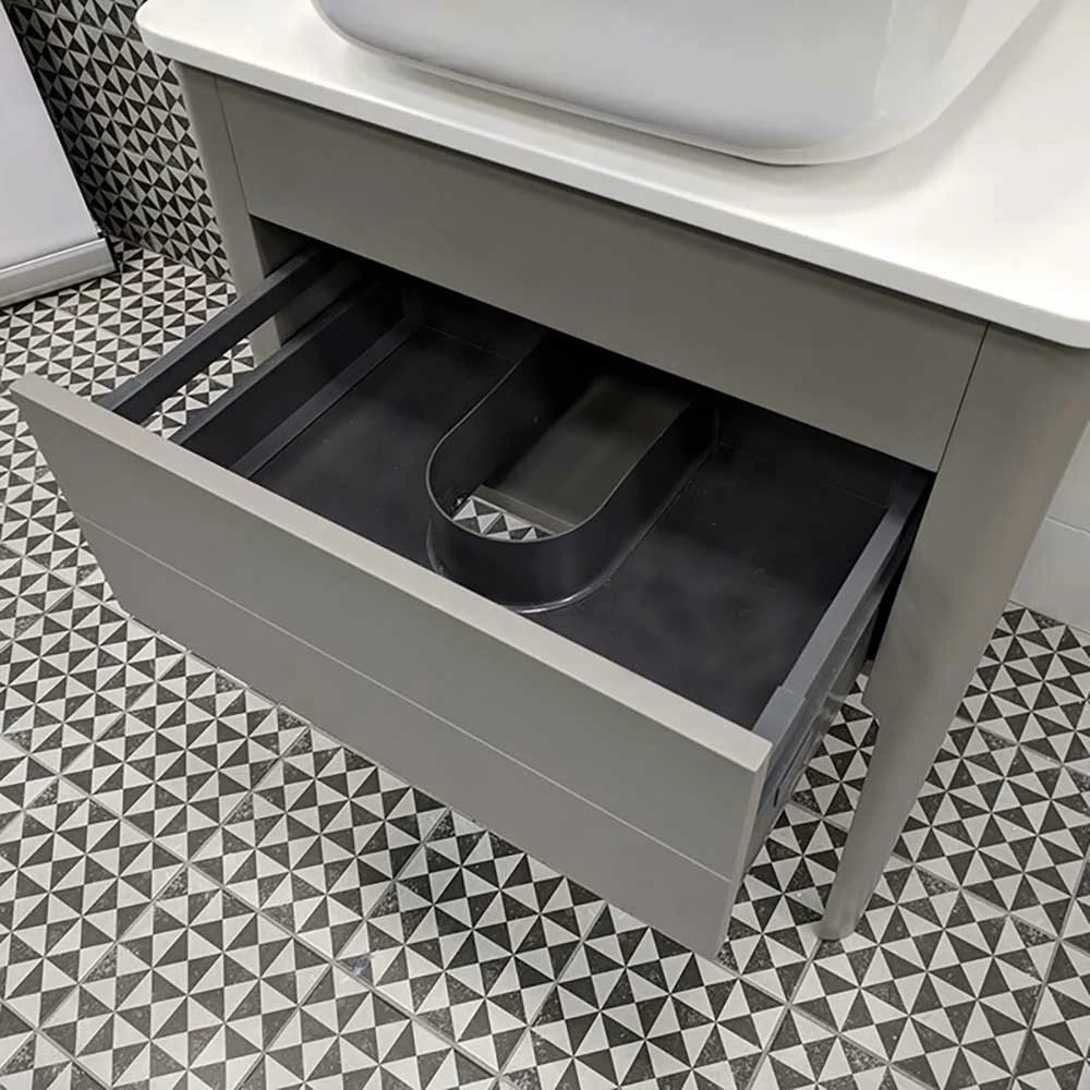 The drawer space is generous and utilizes soft close mechanisms, aiding in protecting the surface, edges and corners of the wood from chips or marks. This vanity is coupled with a premium quality worktop for that hotel bathroom feel.