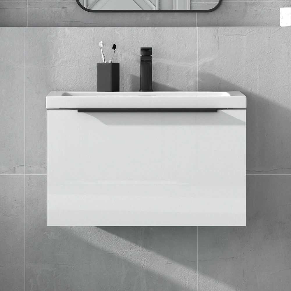 - Stonecast basin topped with an anti-bacterial high gloss finish