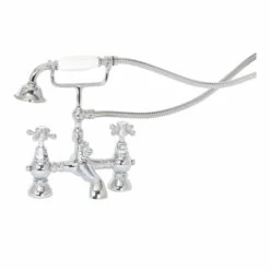 - Crafted from solid brass with white ceramic and polished chrome finish