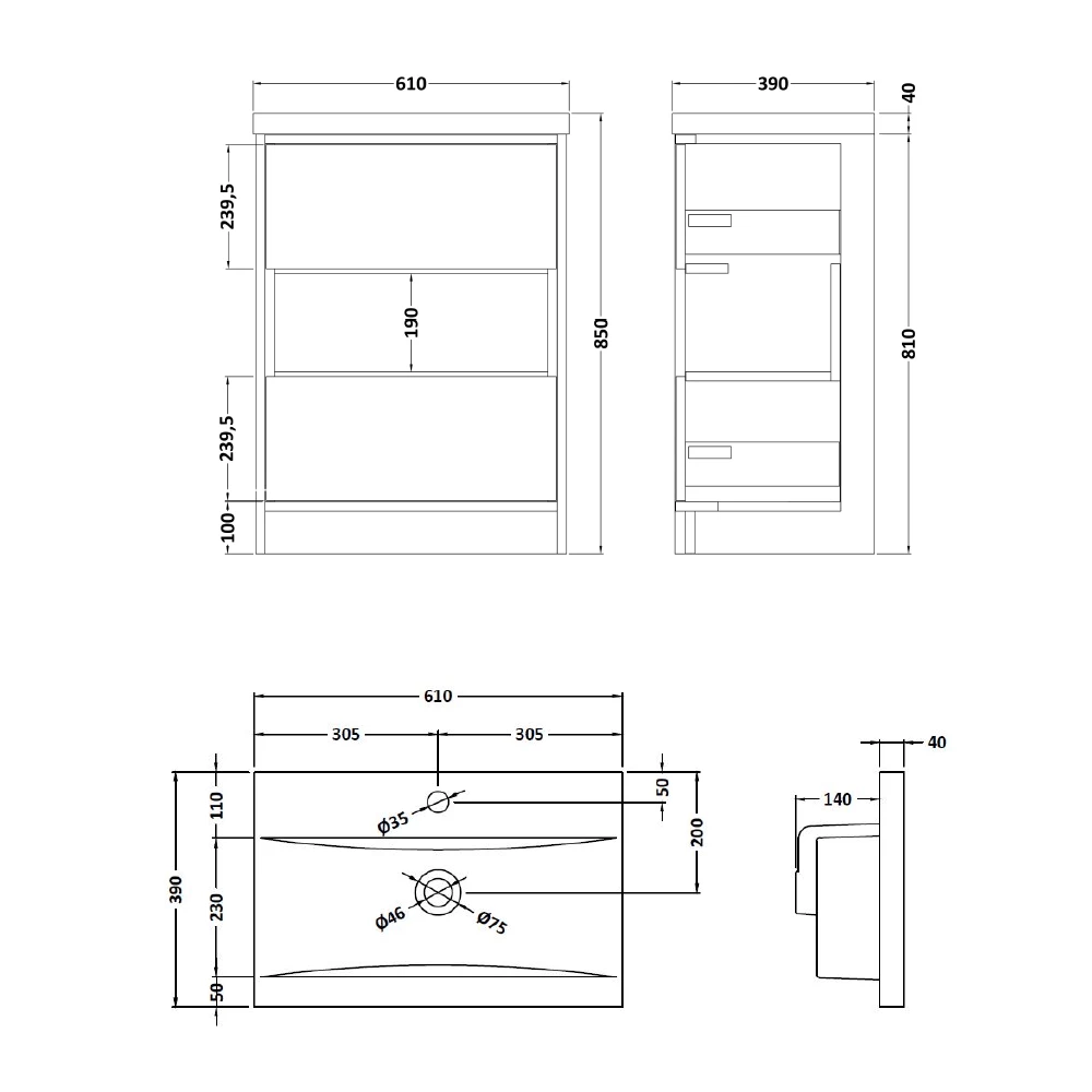 The Coast 600mm free standing vanity unit and basin features a high quality push to open mechanism to make opening the two drawers as simple as giving the drawer a little push. Beyond creating an elegant and timeless style, handleless design is safer, since there are no protruding pieces that could accidentally catch your clothes or get walked into or banged on. And the soft close mechanism means that there will be no more nasty bangs if you accidentally close it a bit too forcibly.