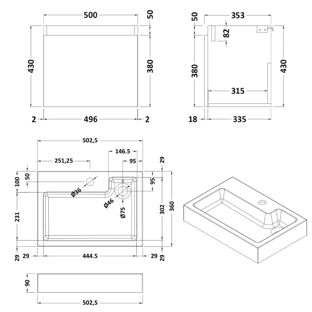 - Width – 503mm