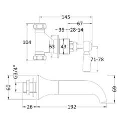 Hudson Reed Black Topaz Crosshead Deck Mounted Bath Shower Mixer With Handset Kit & Hexagonal Collar