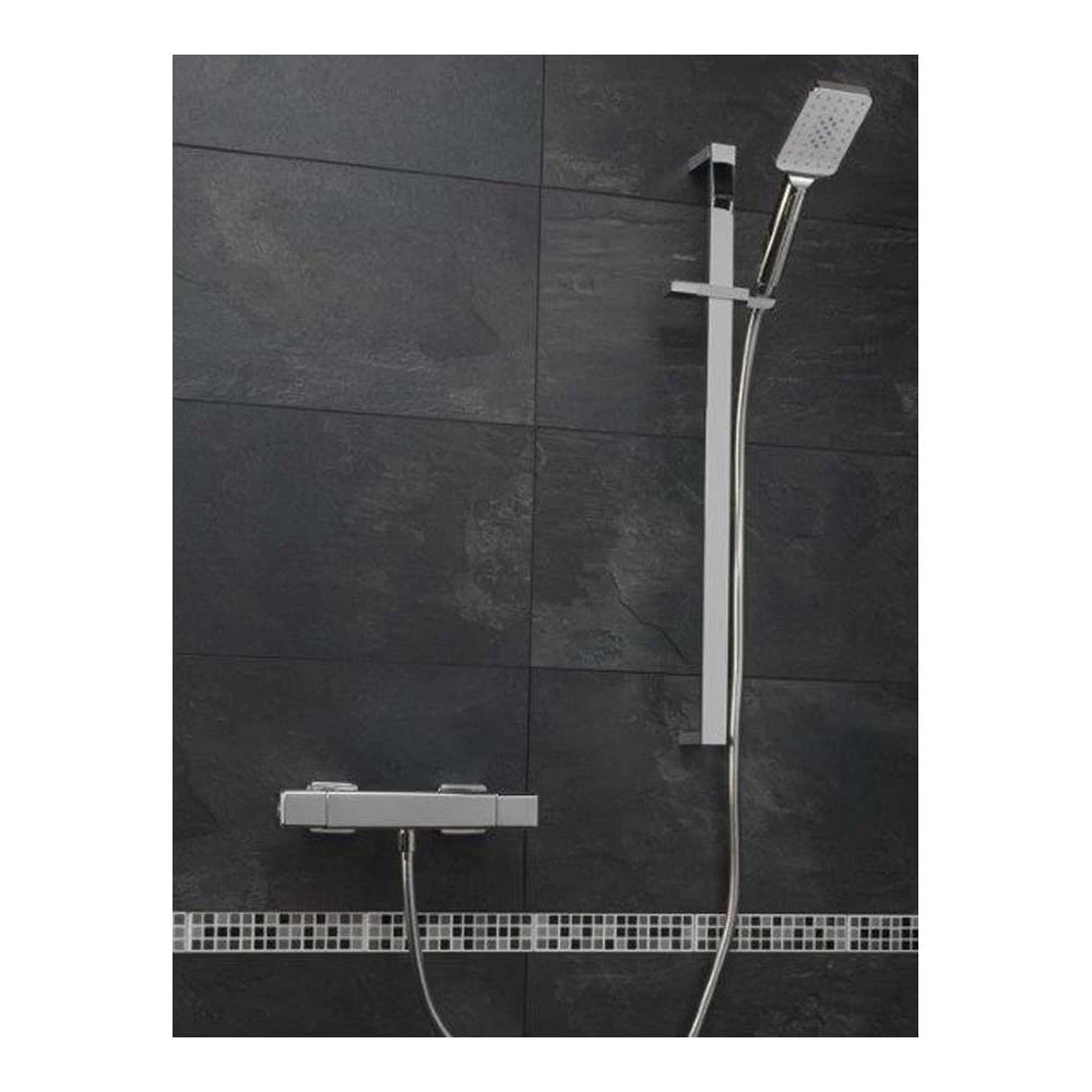 - Includes a bar shower valve, slide rail, shower hose and push button operated shower handset