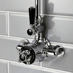 Hudson Reed Victorian Grand Black Topaz Rigid Riser Kit With Exposed Twin Valve – Chrome/Black