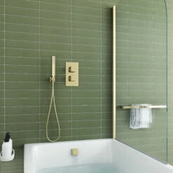 - Includes shower valve, shower hose and handset and fixed overhead shower