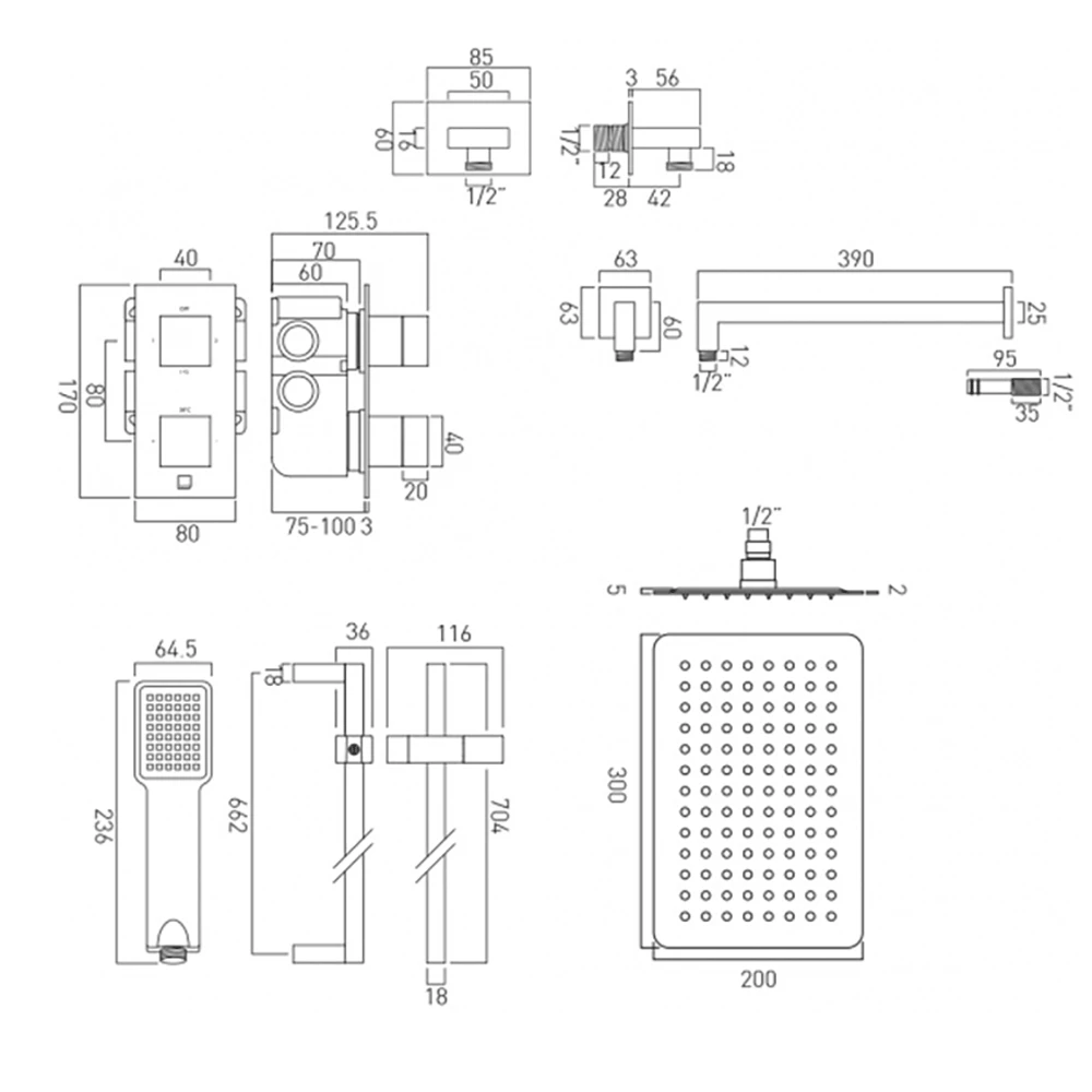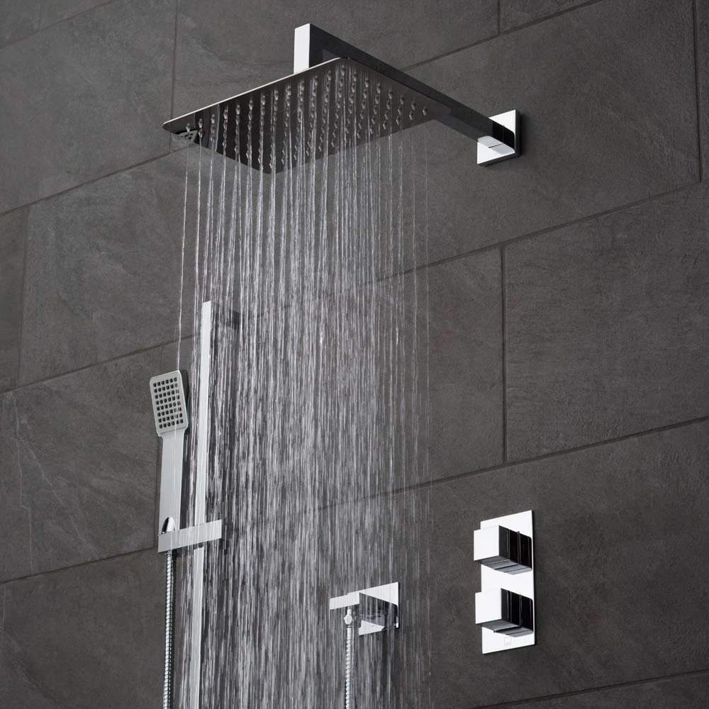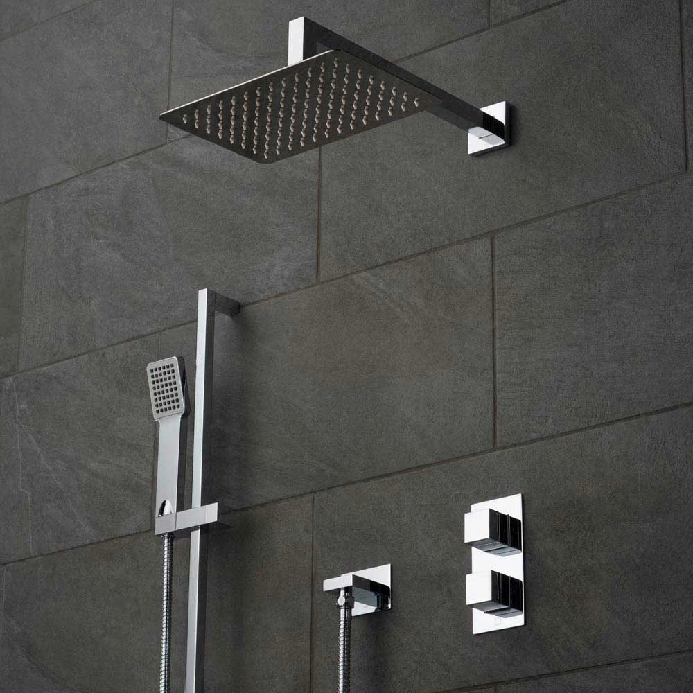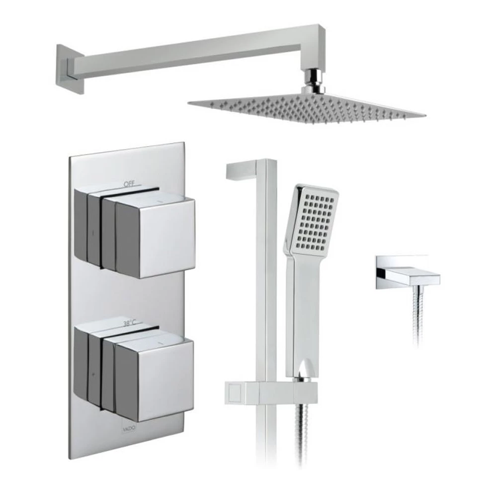 The Vado Notion Shower Package 22 is a fine example of outstanding quality and great design. The pack contains, a vertical 2 outlet thermostatic control valve with “All-flow’ function, an Aquablade 200mm x 300mm shower head and arm, a V2 slide rail with single function shower handset plus hose and completed with an Instinct wall outlet. The practical inclusions of the sliding shower rail and the “All-flow’ diverter valve mean that this pack not only looks good but also performs excellently too.