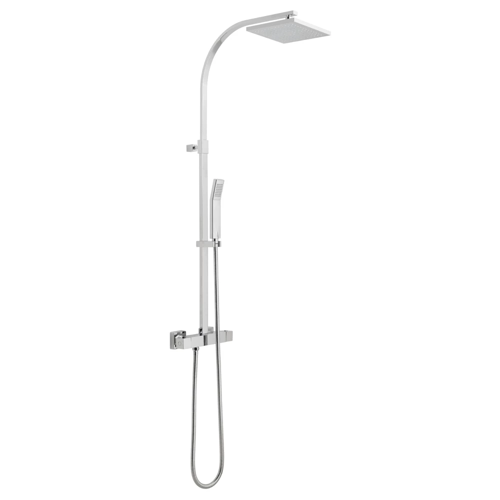 The Vado Velo Square Thermostatic Shower Valve with Integrated Diverter & Rigid Riser Rail Kit is a great addition for minimalist bathrooms because of its clean overall look. It has a balanced appeal with its front mounted telephone showerhead that has a simple bent rectangular shape. The showerhead itself is a sturdy square piece attached to an elegantly curving neck. The pieces have all been given that gleaming chrome-plated finish and you are assured of easy maintenance because of the shine produced by these bathroom fixtures with the help of their nonporous surfaces. Consider adding this symmetrical set to your bathroom today for that unmistakable style!