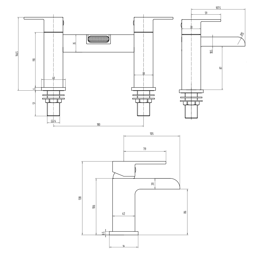 - Â Bath mixer tap require minimum water pressure of 0.5 bar