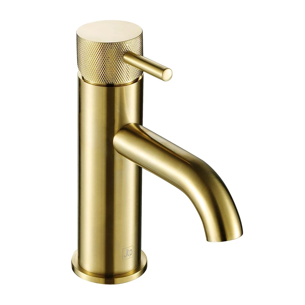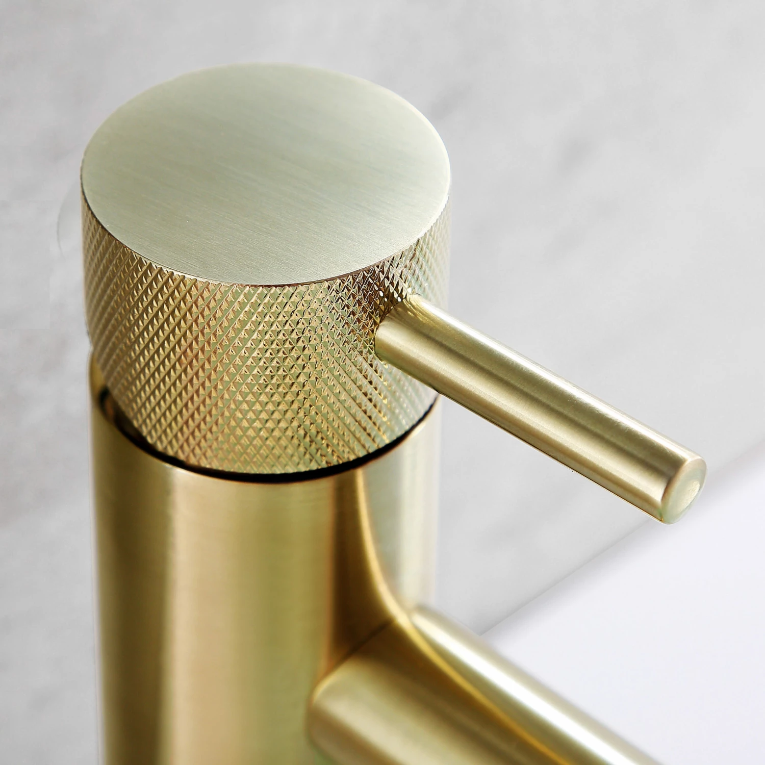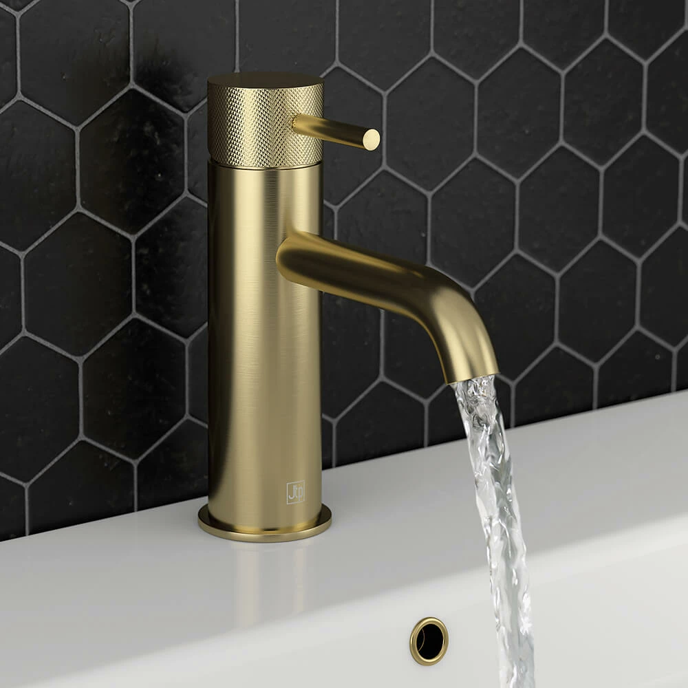 Add a splash of minimalist luxury to your bathroom design with the VOS Single Lever Basin Mixer with Designer Handles. This contemporary basin mixer is made using sturdy brass with an elegant PVD coated finish and eye-catching knurled handles. Perfect for pairing with other elements of the VOS brushed brass range, this basin mixer certainly doesn’t disappoint when it comes to the practical bits either.
